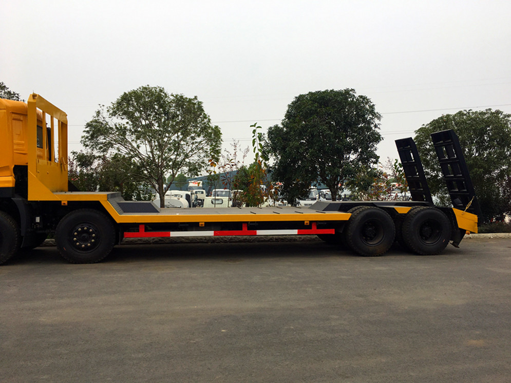 | 整車配置: | 程力前四后八低凹平板運輸車”專利產品,三大優勢,無可替代①重心低承載面離地≤900mm,挖機登車不在恐高。②行駛更安全。低離心力保證車輛彎道行駛更安全。③高通暢性。車輛載貨在涵洞及限高路面通行更通暢。天龍豪華駕駛室、濰柴300馬力發動機、十檔變速箱、457雙后橋、1100鋼絲胎、下凹可用尺寸4.7米、離地高度90公分、全國各地上戶無憂!道路運輸車輛達標已經下達,辦理營運證! | ||