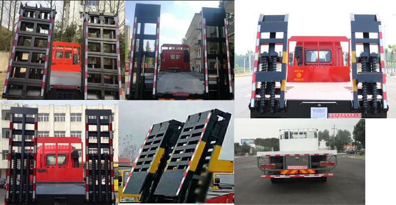 | 整車配置: | 底盤配置:東風多利卡D9平板運輸車,【國六康機195馬力發動機,250雙車架,4.5T前橋,10T德納后橋】,【國六玉柴200馬力發動機,250三層車架,3.9T前橋,8T德納后橋】,法士特8檔變速箱帶高低檔,10.00R20鋼絲輪胎,帶空調電動門窗,ABS,斷氣剎,排氣制動;該車有國家環保公告和燃油公告,可在全國各地上牌辦理營運證。 上裝配置:橫梁采用100*100方管,間距25公分,面板采用5mm或8mm厚花紋板,板面鋪設防滑鋼條,車尾雙彈簧加強型爬梯,便于工程車上下安全,斜坡下有后支腿,選裝平板貨箱帶墻板設計,選裝【全液壓、半液壓】折疊爬梯。 | ||